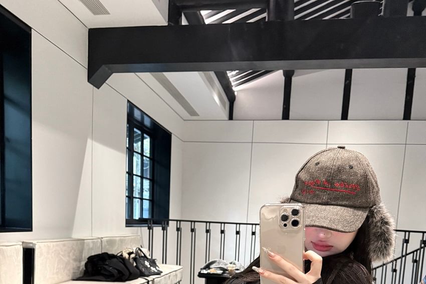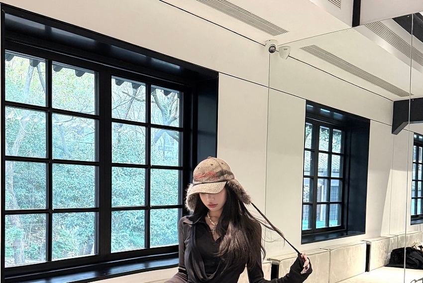 Long-Sleeve Collar Plain Cropped Tee / Low Rise Inverted Pleated Wide Leg Pants