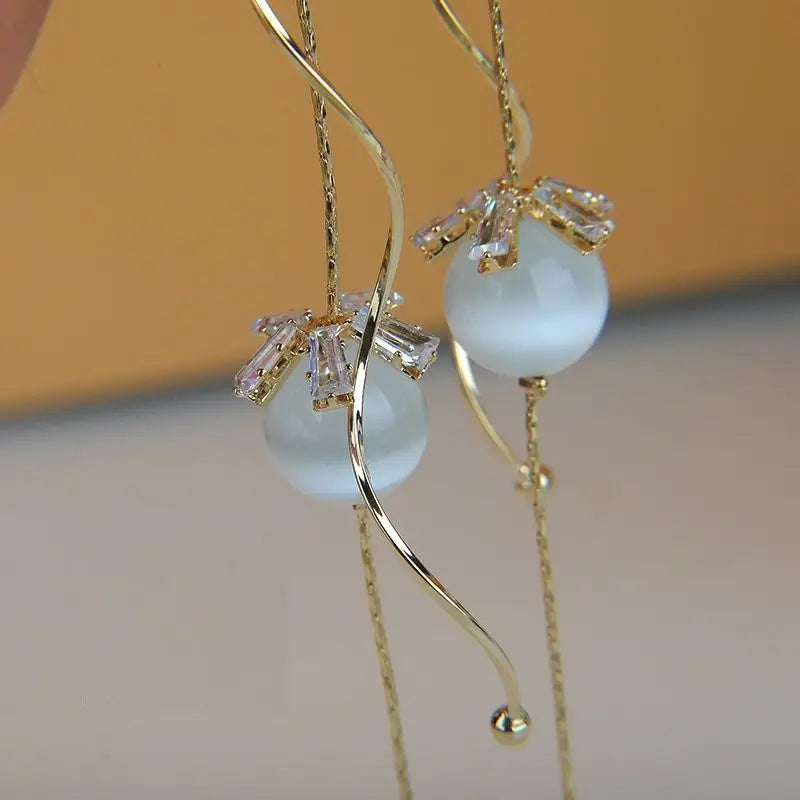 Aesthetic Faux Cat Eye Stone Rhinestone Alloy Dangle Earring R99