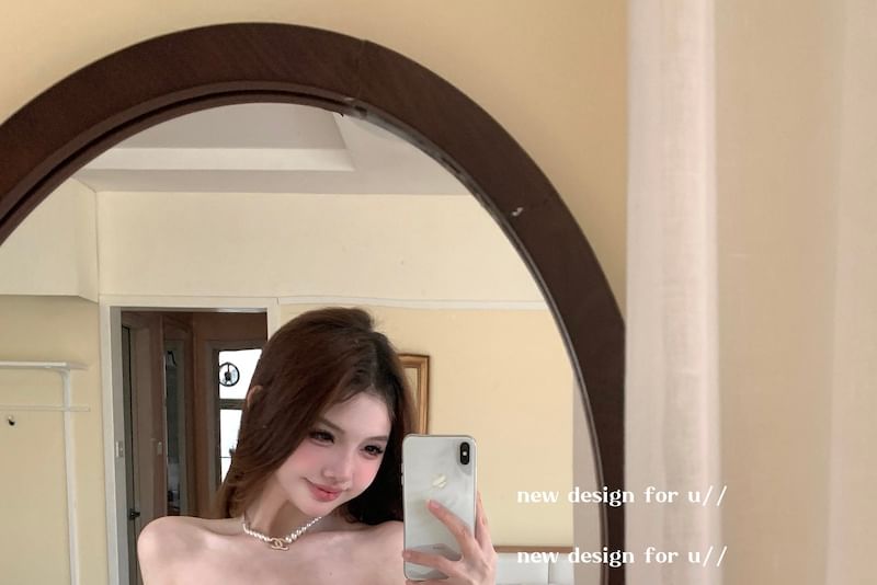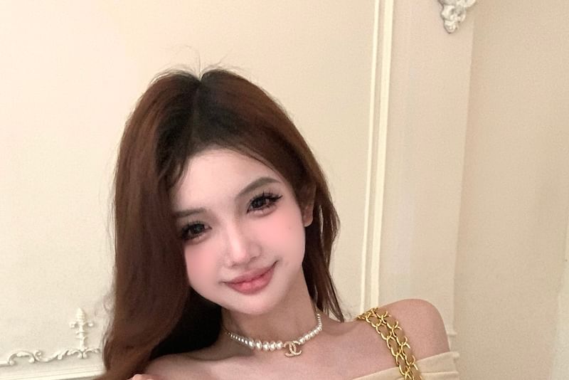 Rise A-Line Plain T-Shirt Off-Shoulder Fit Skirt Long-Sleeve Mini Ruched Slim / Asymmetrical Tiered High