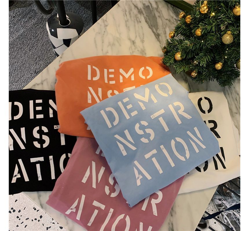 Short-Sleeve Round Neck Lettering Tee