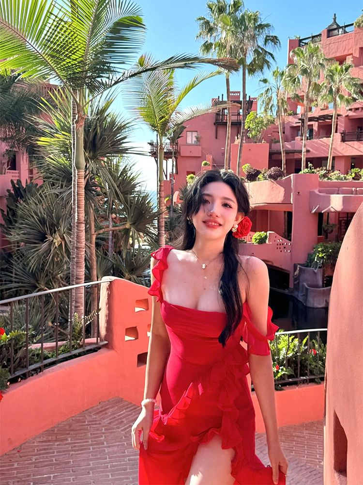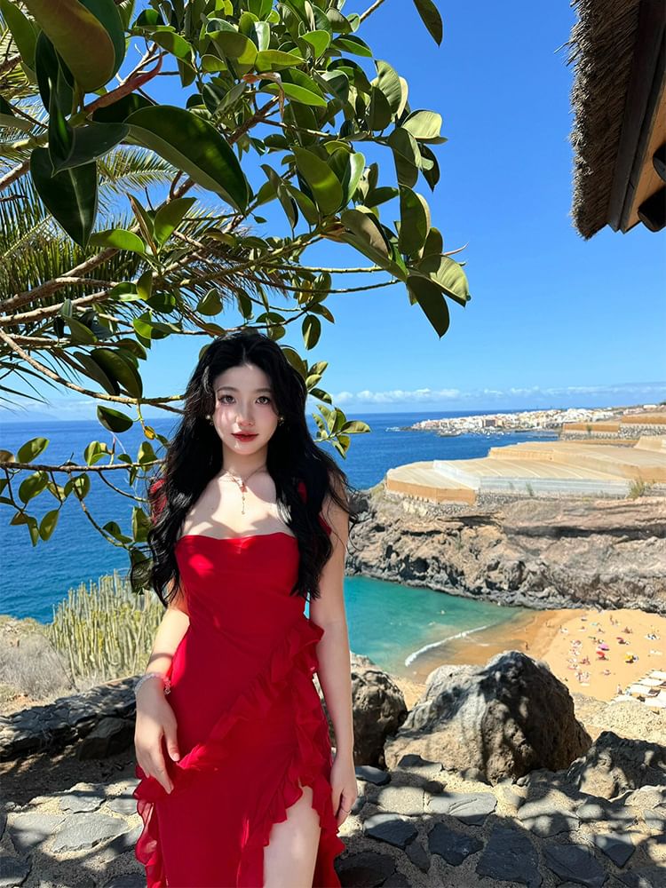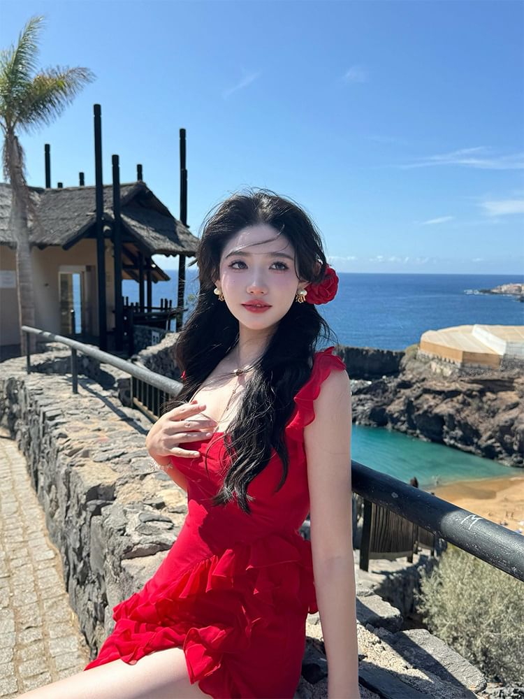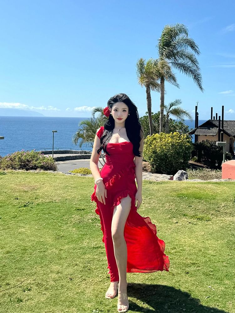 Sleeveless Square Neck Plain Ruffle Trim Open Back Slit Maxi Bodycon Dress