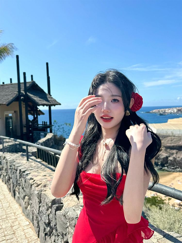 Ruffle Open Square Bodycon Maxi Trim Sleeveless Plain Slit Neck Dress Back