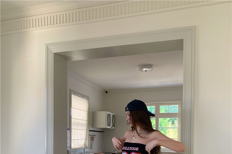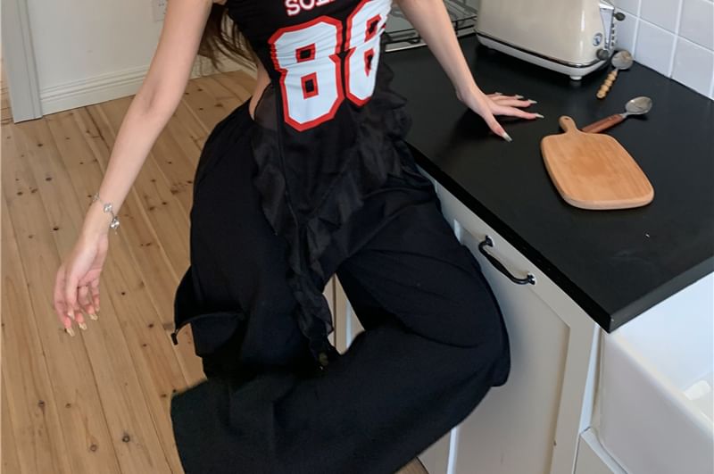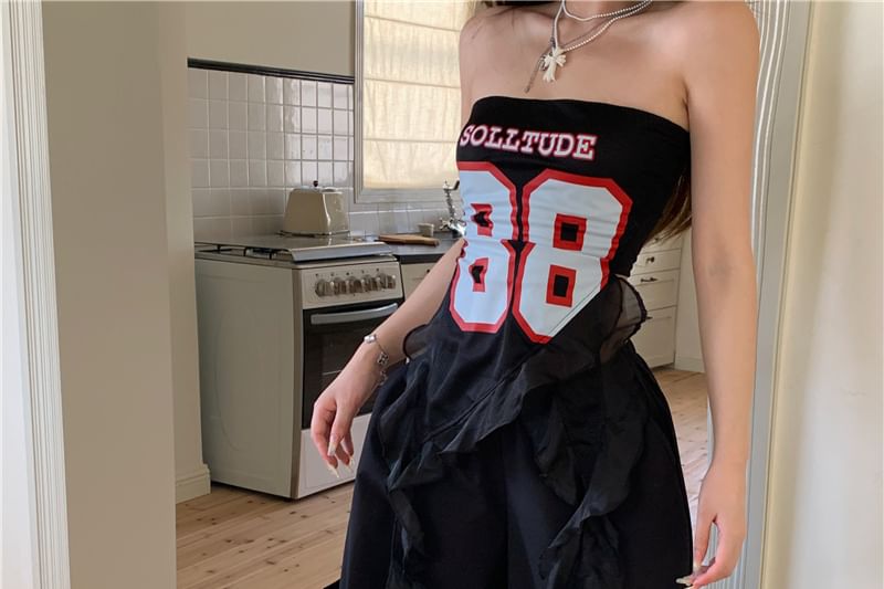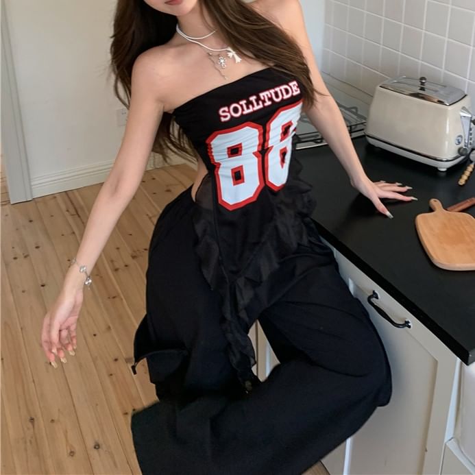 Numbering Ruffled Tube Top / High Waist Wide Leg Pants