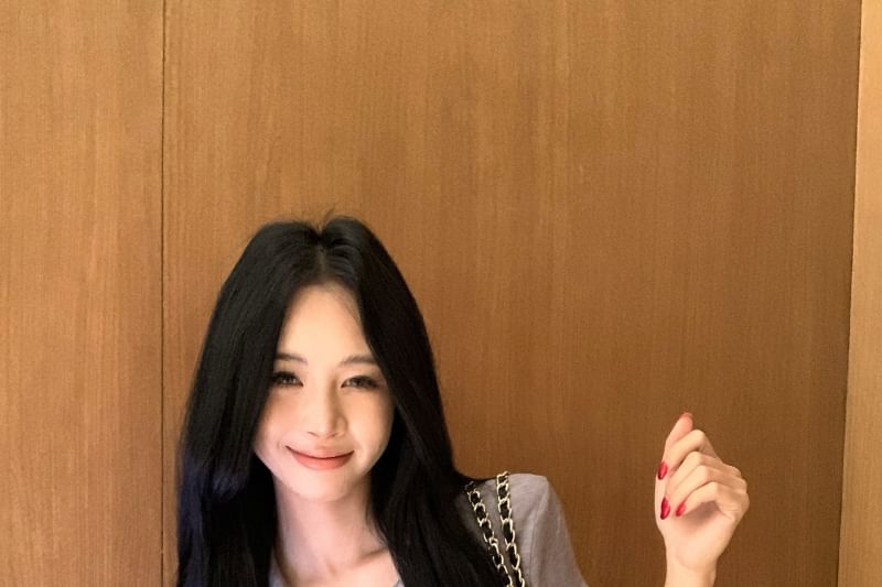 Short-Sleeve Collared Half-Buttoned Plain Slim Fit Tee / High Waist Hot Pants