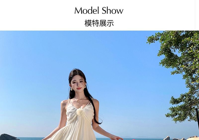 Spaghetti Strap V-Neck Plain Ruffle Trim Maxi A-Line Dress