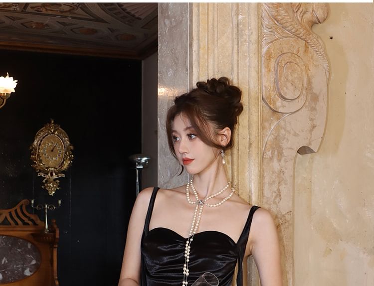 Spaghetti Ruched Maxi Dress Sheath Plain Sweetheart Strap Neck