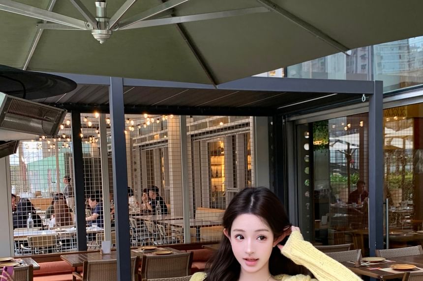 Speckle Cardigan Top Perforated Tie Drawstring / Pants Hot Knit Crop Tube Front Waist