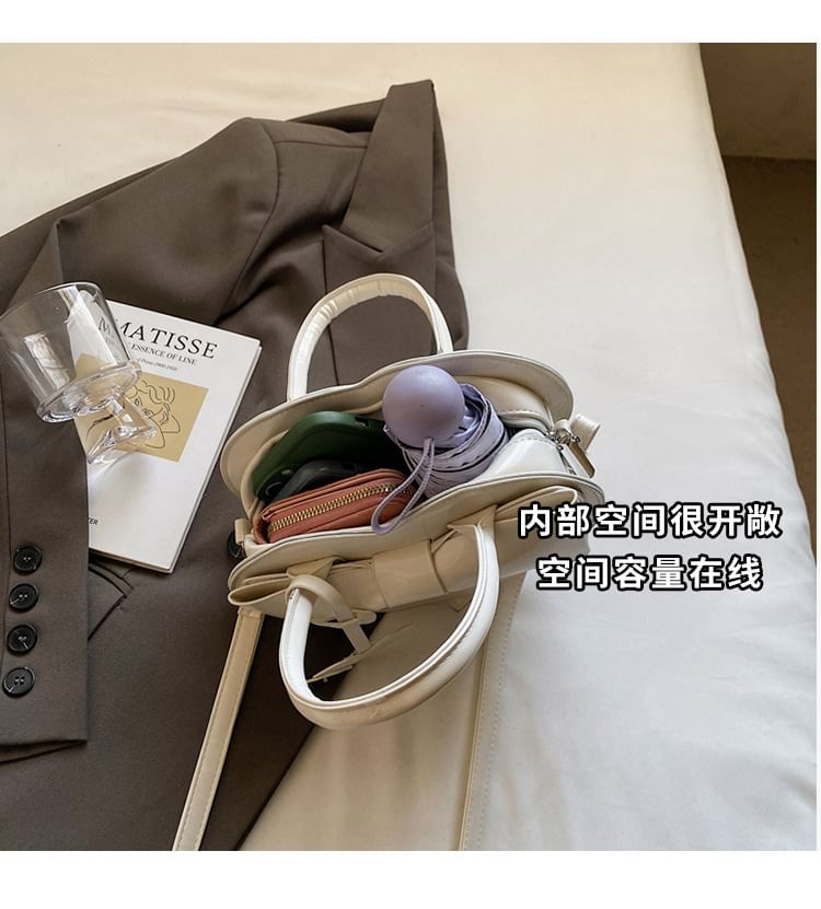 Faux Leather Top Handle Bow Heart Crossbody Bag