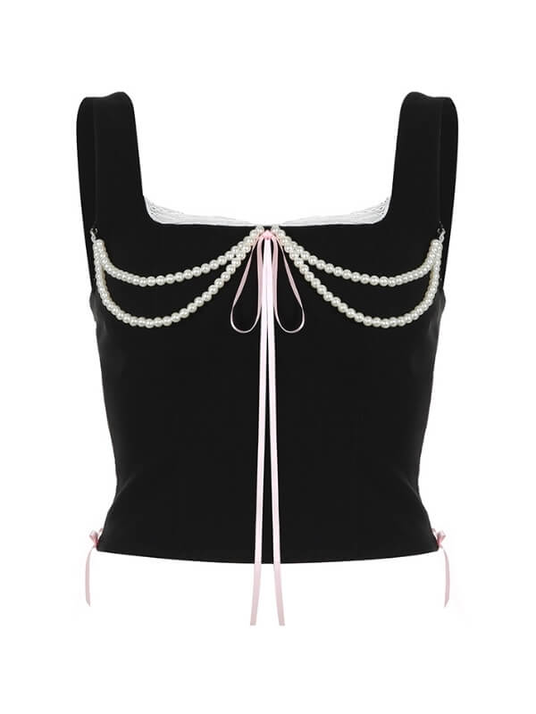 This vintage elegant pearl camisole adds a touch of classic charm to any outfit. Made with high-quality pearls, it offers a unique and stylish look. Perfect for dressing up or down, it's a versatile addition to your wardrobe. Embrace your kawaii side with this sweet and sophisticated camisole.