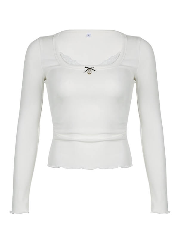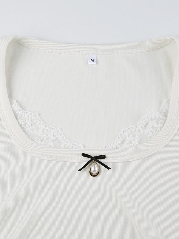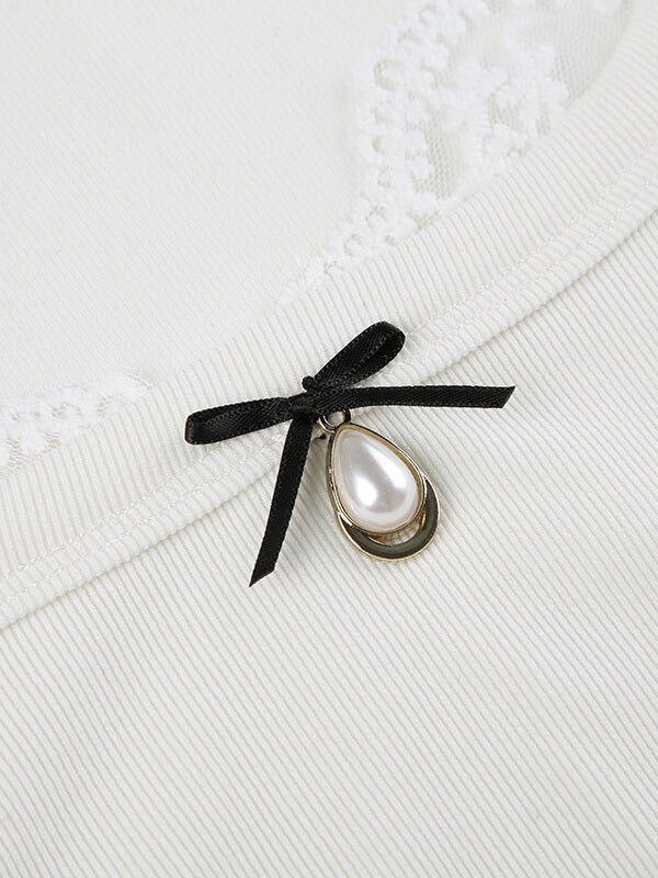 Be effortlessly elegant with our White Lace Pearl Decoration Top. This kawaii piece features delicate lace and luxurious pearl embellishments, perfect for adding a touch of sophistication to any outfit. Let your style stand out with this unique and charming top.