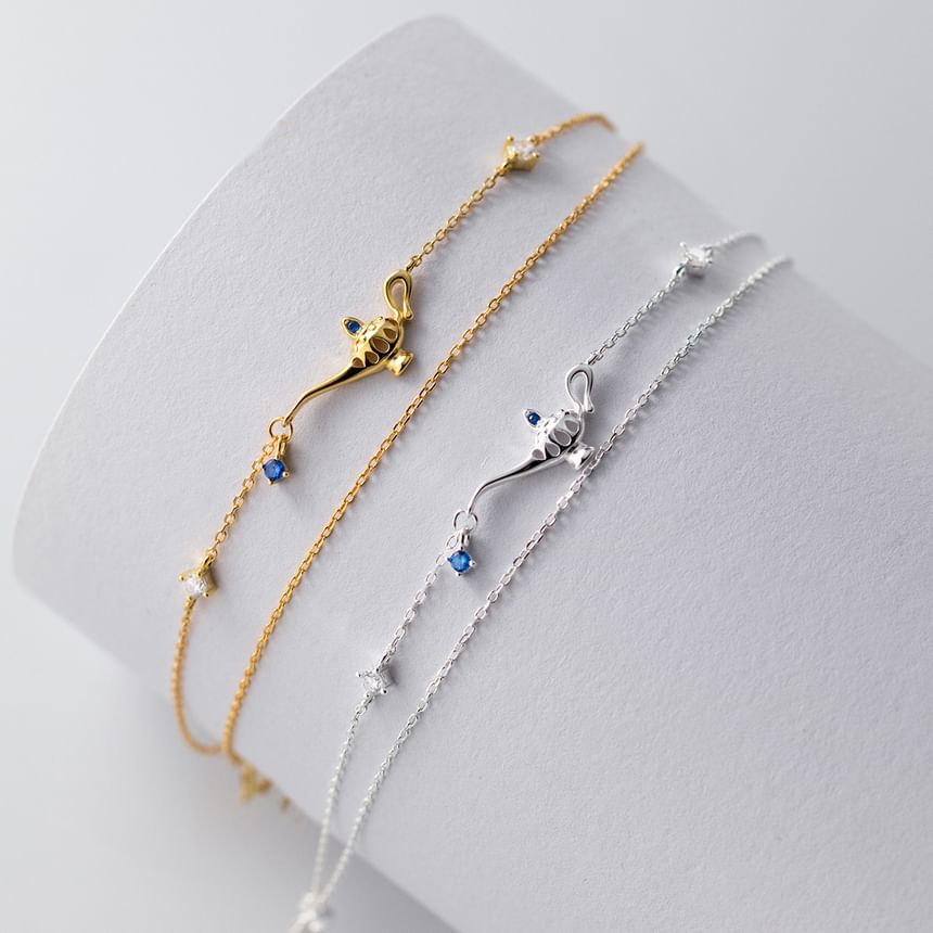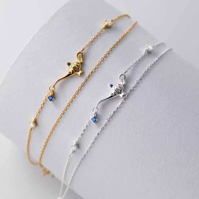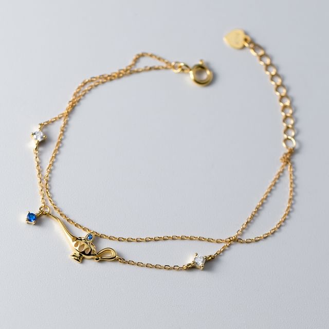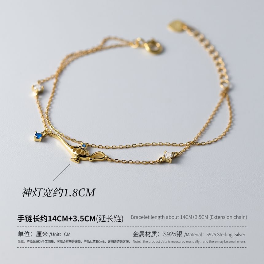 925 Sterling Silver Lantern Rhinestone Layered Bracelet