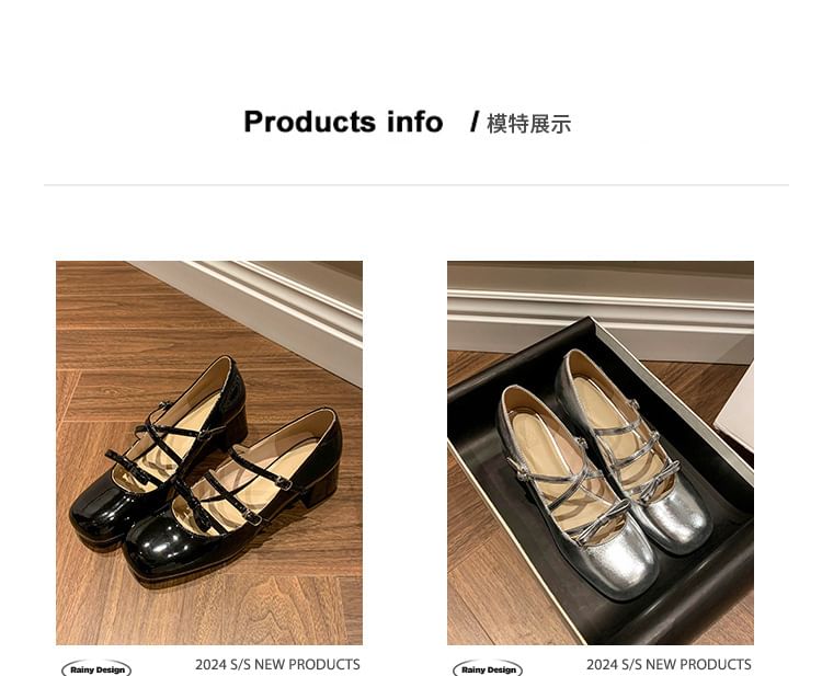Strappy Bow Chunky Heel Mary Jane Pumps