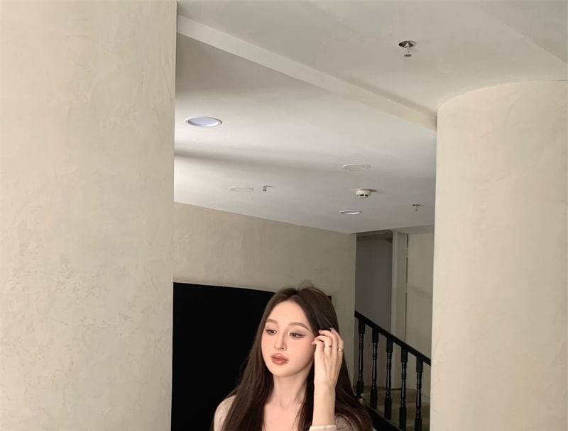 Crop Cami / Top V-Neck Mid Lace Rise Shorts Plain 3/4 Cardigan Sleeve