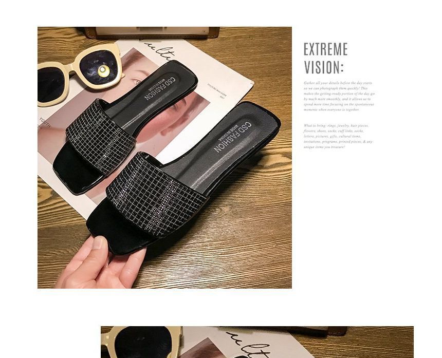 Rhinestone Flat Slide Sandals