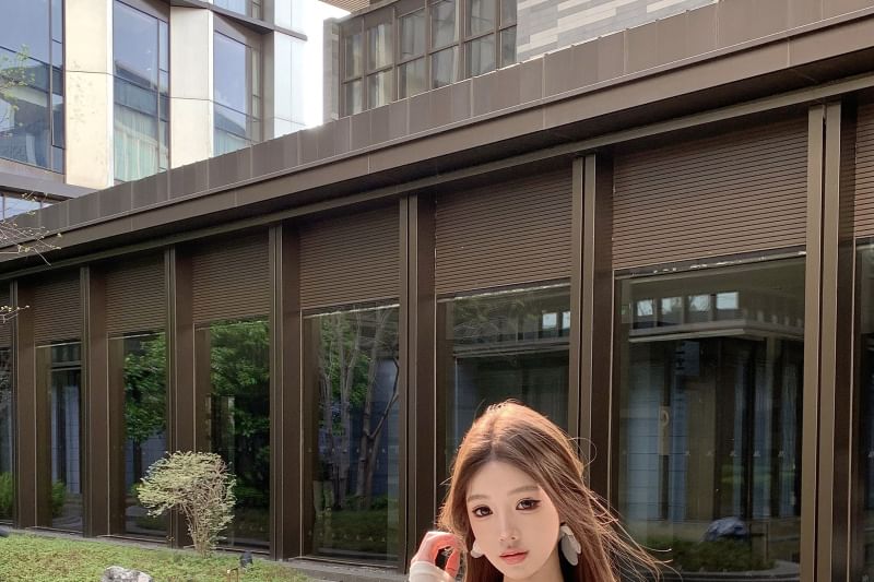 Halter Plain Lace Trim Top / Plain Ruffle Bolero