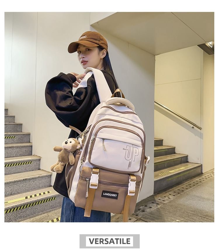 Lettering Buckled Nylon Backpack / Bag Charm / Set