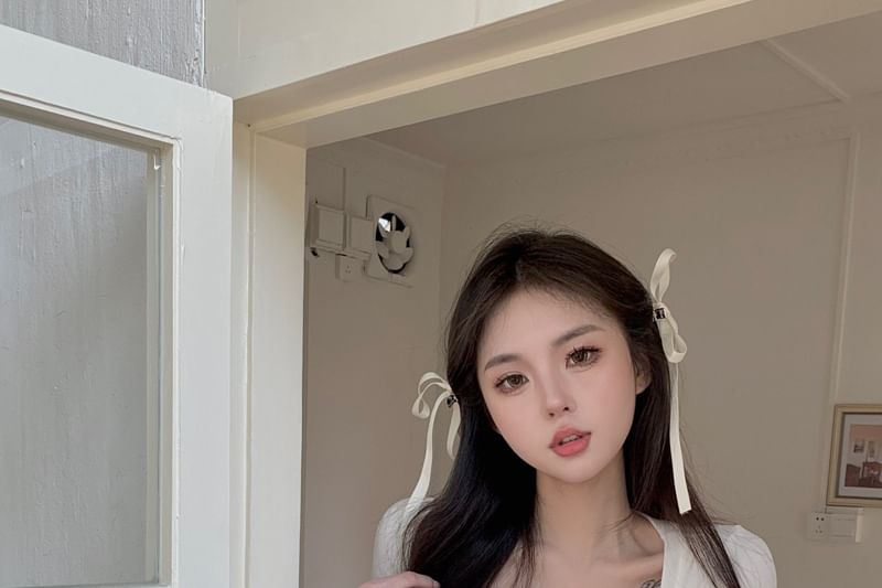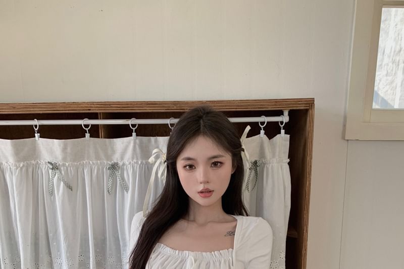 Mock Plain Sleeve Short Ruched Square Top Two Neck Piece