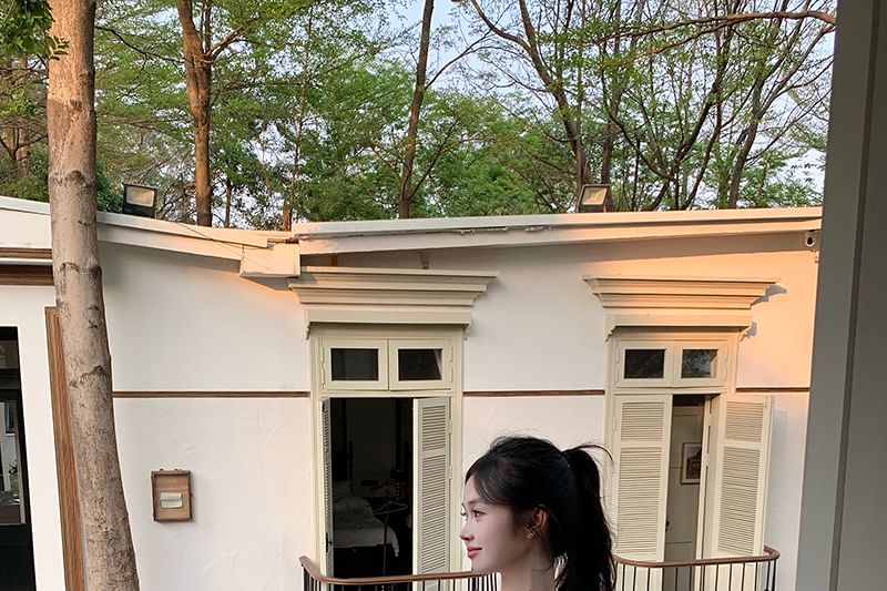 Plain Asymmetrical Neck Sleeve Top Cutout Cap