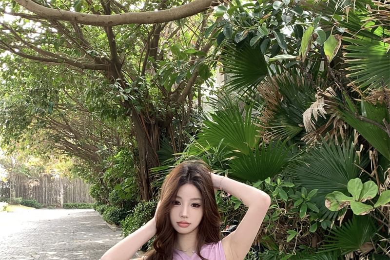 Plain Panel Ruched Bodysuit Top Sleeveless