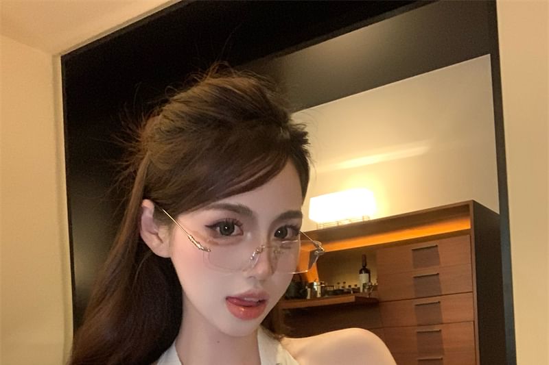 Plain Rhinestone V-Neck Top Halter