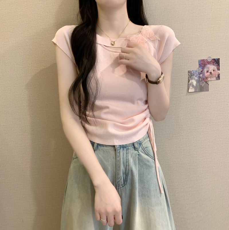 Short-Sleeve Butterfly Accent Plain Tee