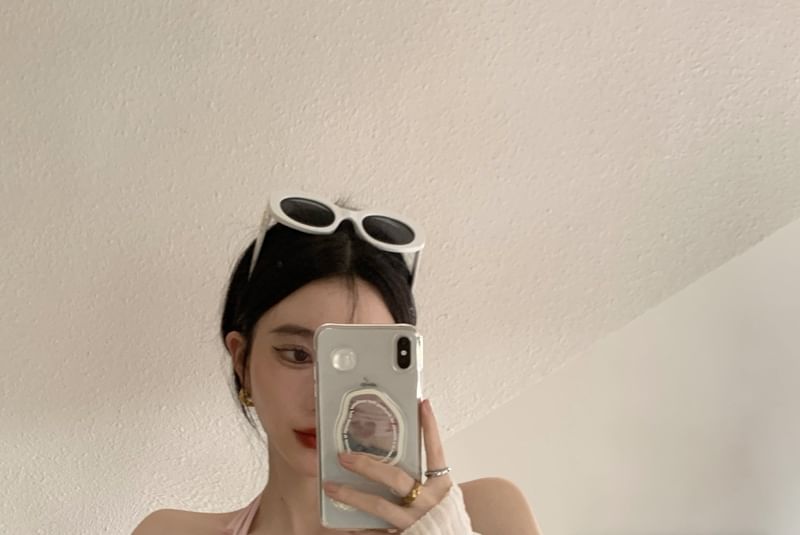 Print / Neck Floral Plain Cardigan Crop Top Halter