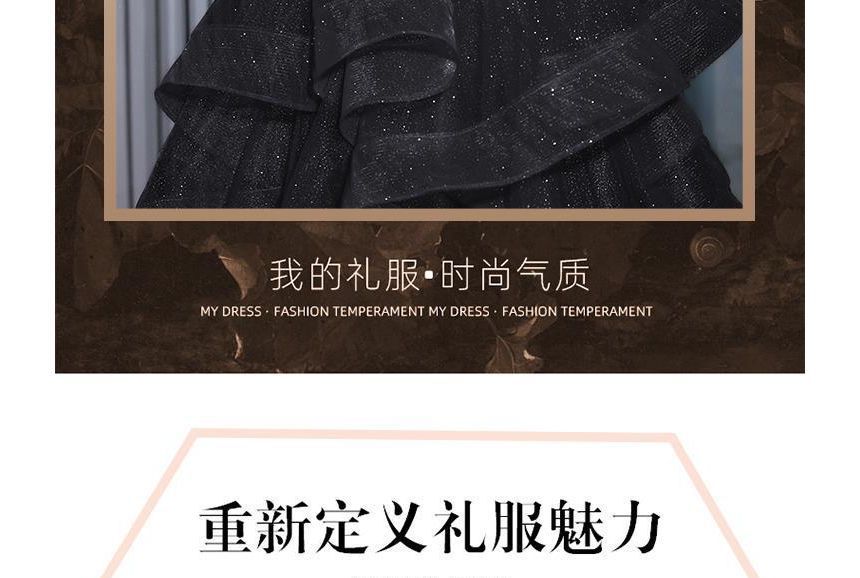 Shoulder Panel A-Line Off Velvet Rhinestone Ruffle Gown Evening Short-Sleeve Glitter