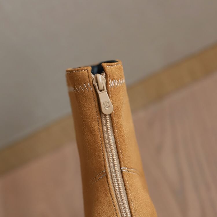 Toe Short Pointed Heel Chunky Boots Denim