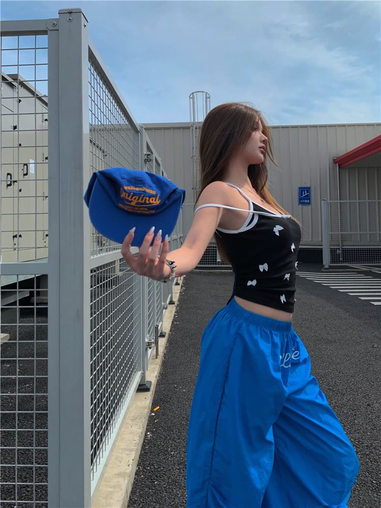 Top Pants Cami Bow Elastic Waist Plain / Leg Wide