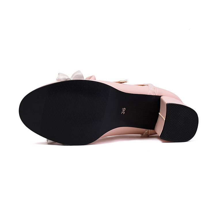 Trim Ankle Bow Heel Mary Chunky Strap Pumps Frill Pearl Jane Faux