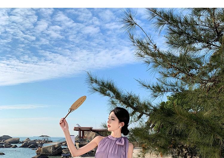 A-Line Maxi Dress Plain Sleeveless Crewneck