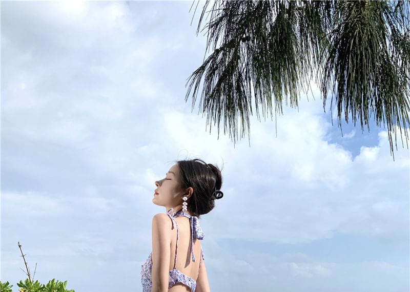 A-Line Midi Dress Floral Print Strap Spaghetti