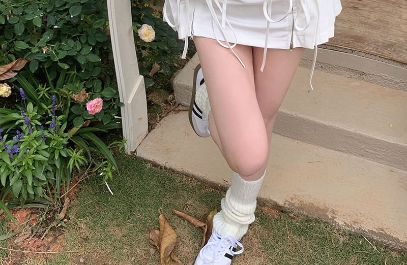 A-Line Mini Skirt Top / Panel Front Cami Plain Tie High Ruched Pleated Rise
