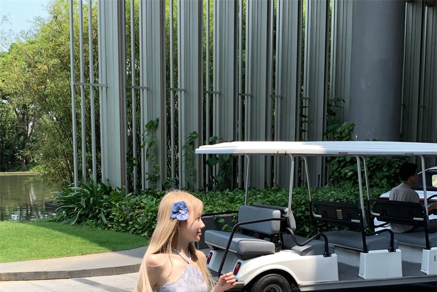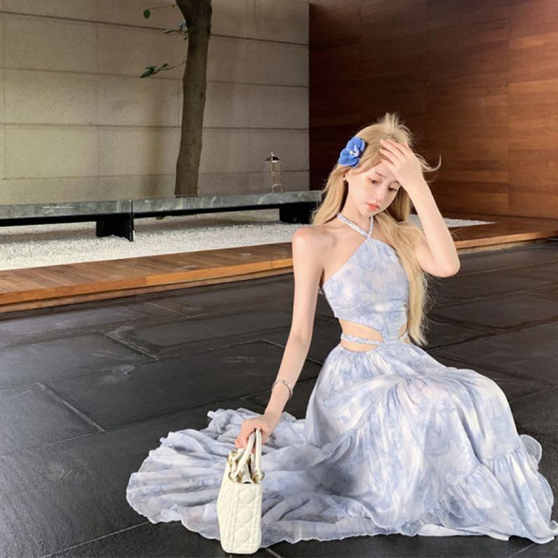 Spaghetti Strap Tie Dye Halter Neck Cutout Maxi A-Line Dress