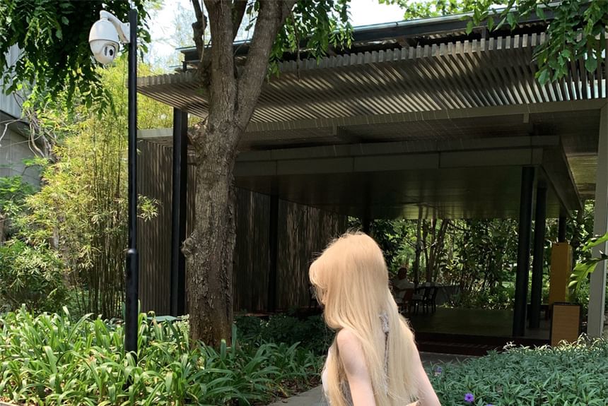 A-Line Tie Dye Dress Spaghetti Strap Halter Cutout Neck Maxi
