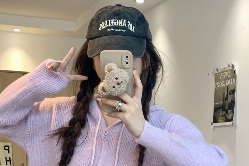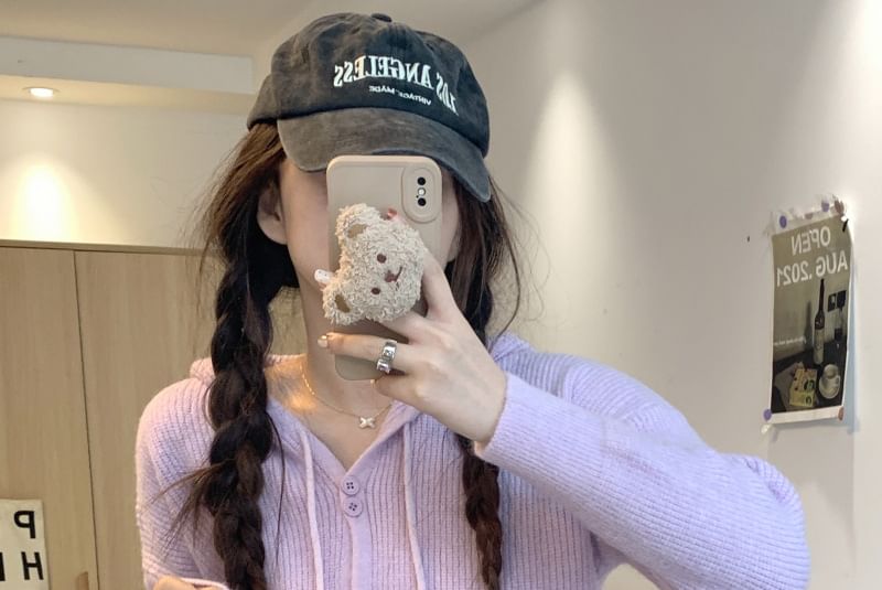 Button-Up Cardigan Hooded Plain