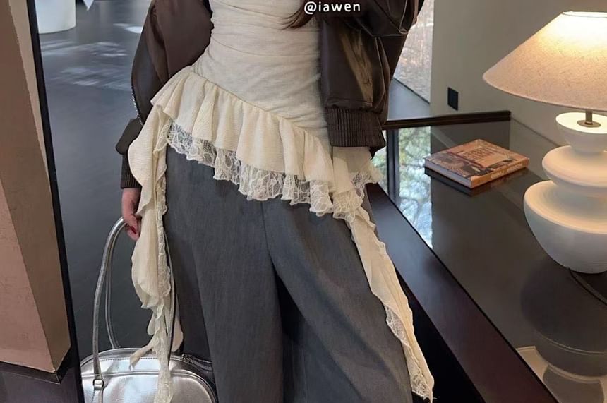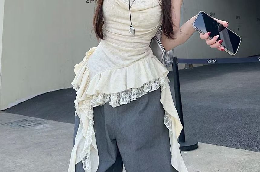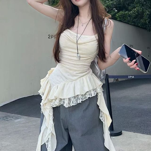 Camisole Asymmetrical Top Cowl Panel Neck Lace Ruffle Hem