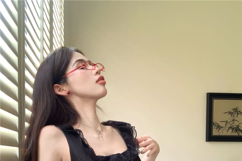 Frill Dotted / Plain Mini Neck Skirt Top Trim Square Sleeveless