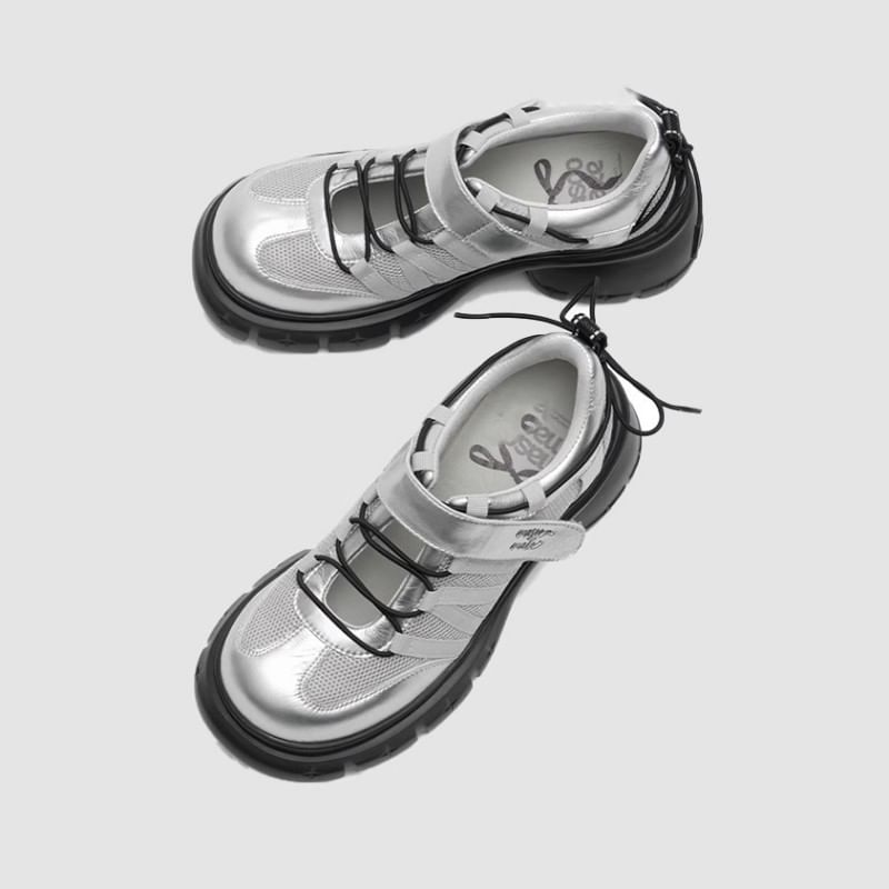 Heel Shoes Platform Lace-Up Chunky