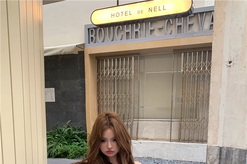 Off-Shoulder / Plain Pullover Waist Contrast Trim Drawstring