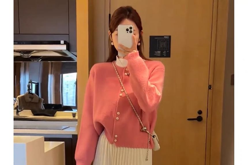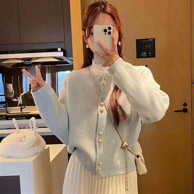 Plain Faux Pearl Buttoned Cardigan