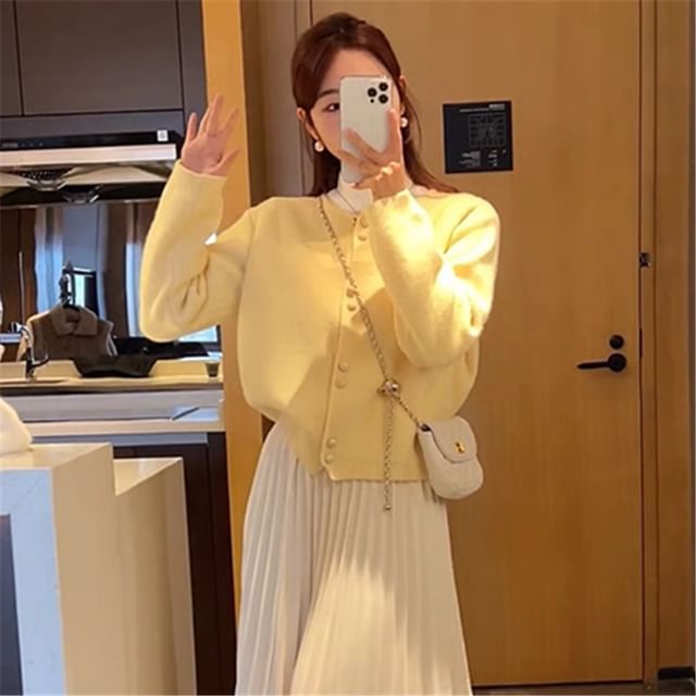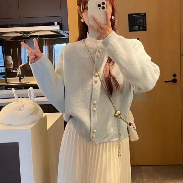 Pearl Plain Faux Buttoned Cardigan