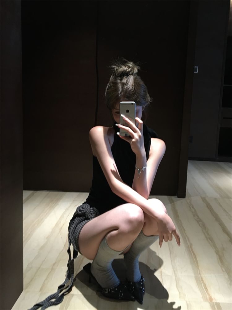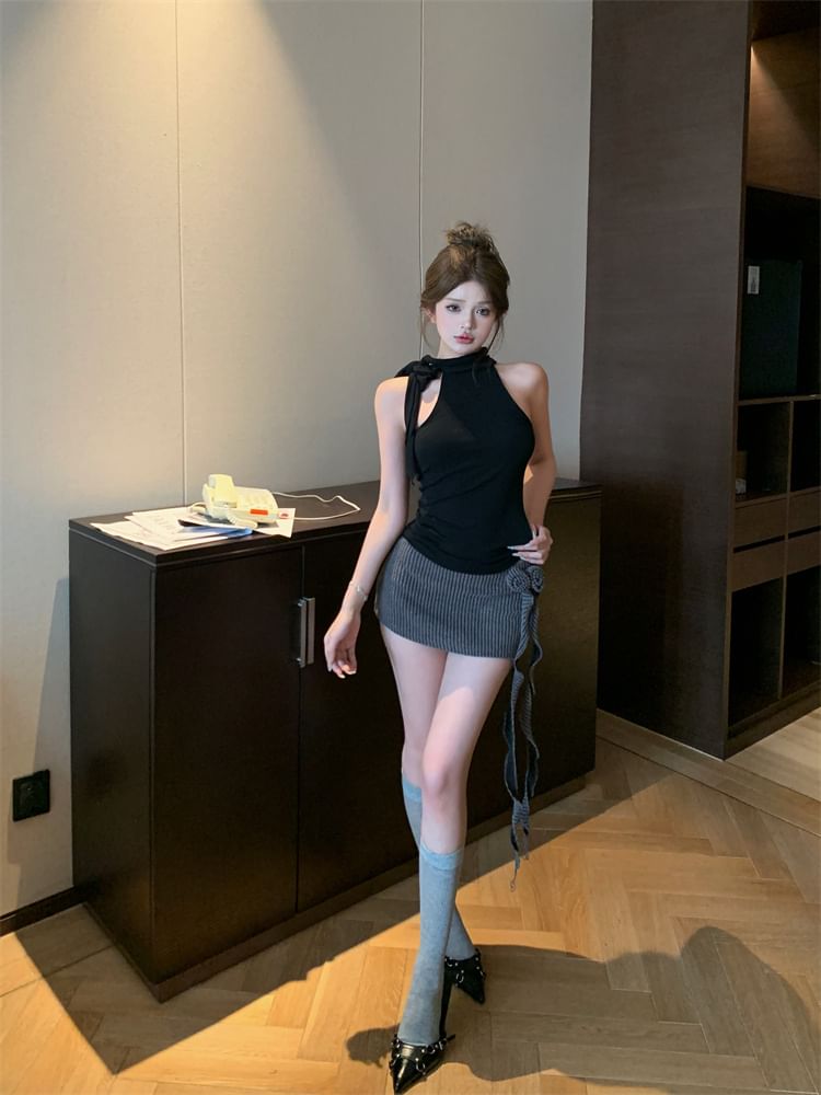 Pencil Flower Waist Low / Skirt Top Mini Halter Detail Mock Neck Plain