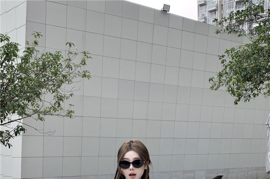 Short-Sleeve V-Neck Plain Slim Fit Crop Tee