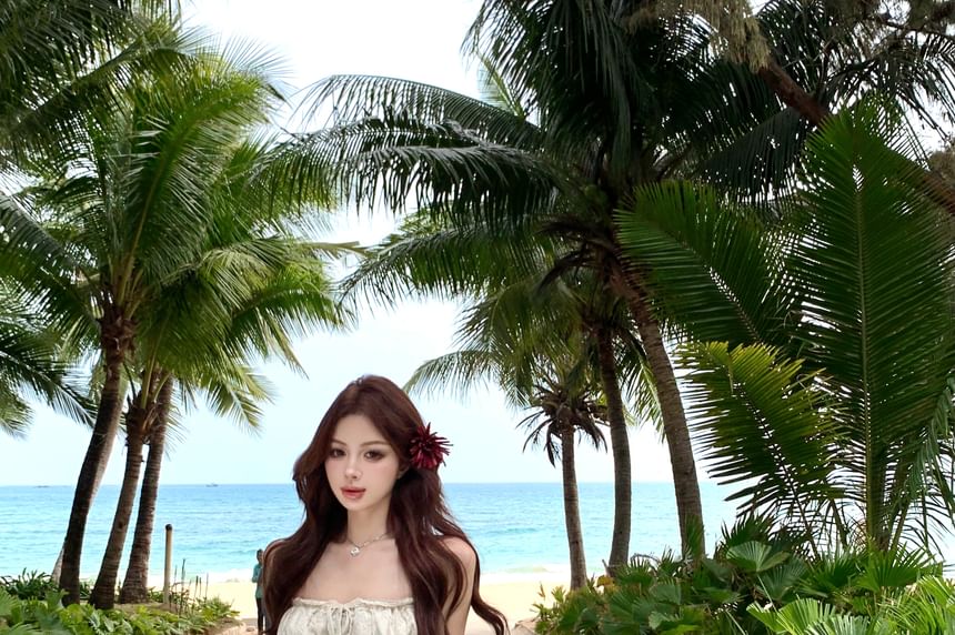 Skirt Camisole Trim Maxi Fishtail Satin Top High Rise / Lace Drawstring