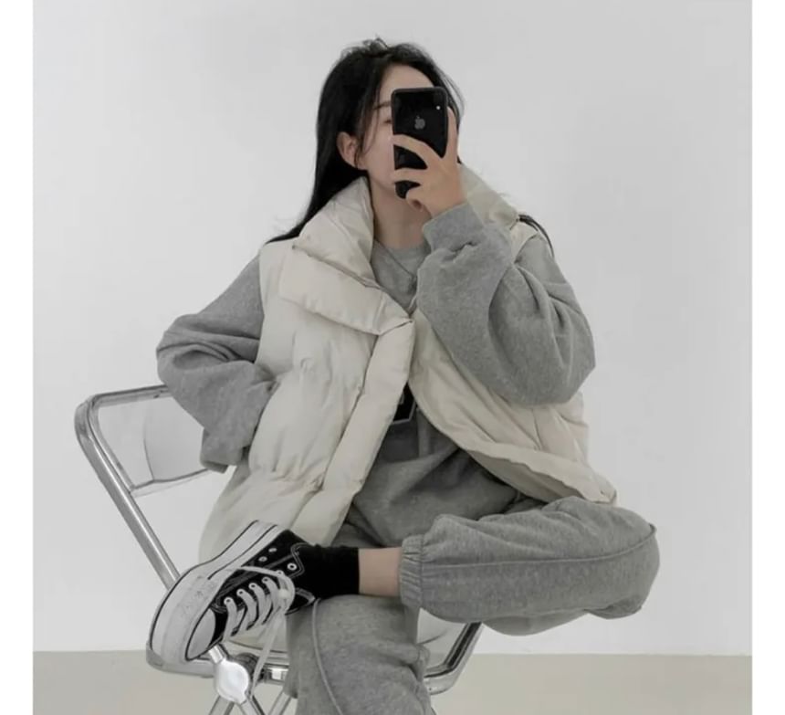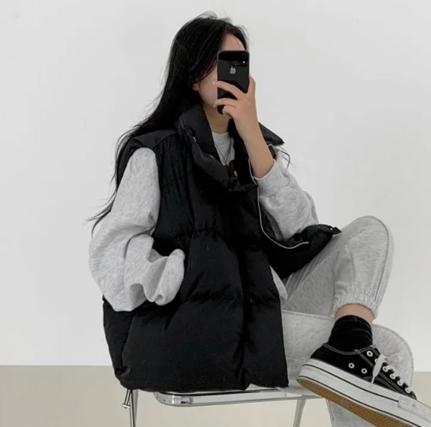 Stand Collar Plain Padded Zip Vest