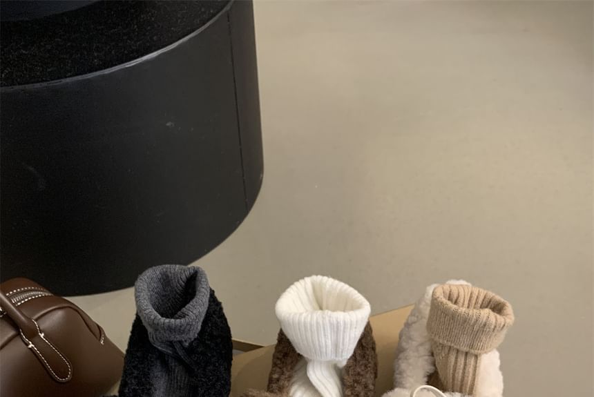 Square Toe Bow Fleece Hidden Wedge Mary Jane Shoes