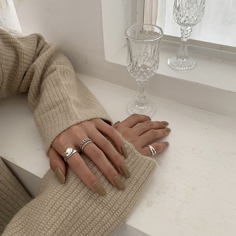 925 Sterling Silver Heart Signet Open Ring / 925 Sterling Silver Cutout Chain Open Ring