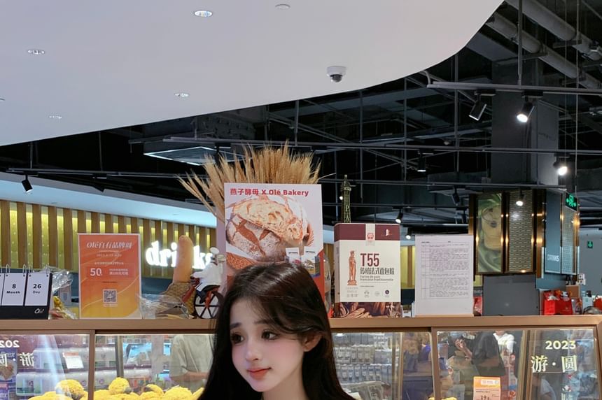 Long-Sleeve Two Tone Asymmetrical Mock Two-Piece Slim Fit Tee