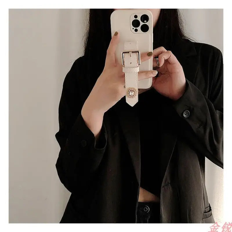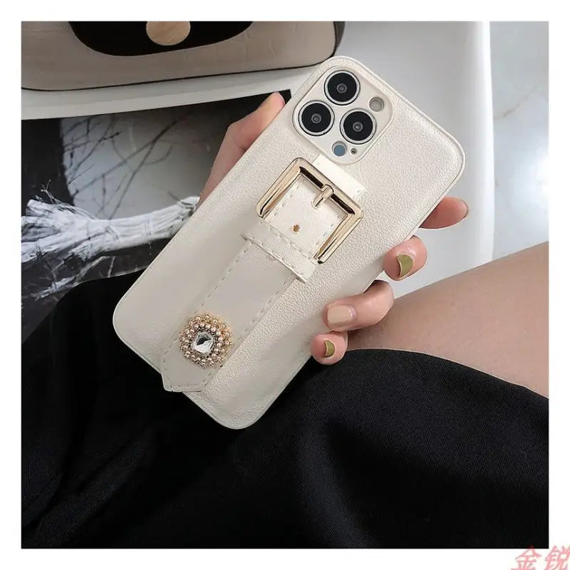 Rhinestone Faux Leather Hand Strap Phone Case - iPhone 13 Pro Max / 13 Pro / 13 / 13 mini / 12 Pro Max / 12 Pro / 12 / 12 mini / 11 Pro Max / 11 Pro / 11 / SE / XS Max / XS / XR / X / SE 2 / 8 / 8 Plus / 7 / 7 Plus